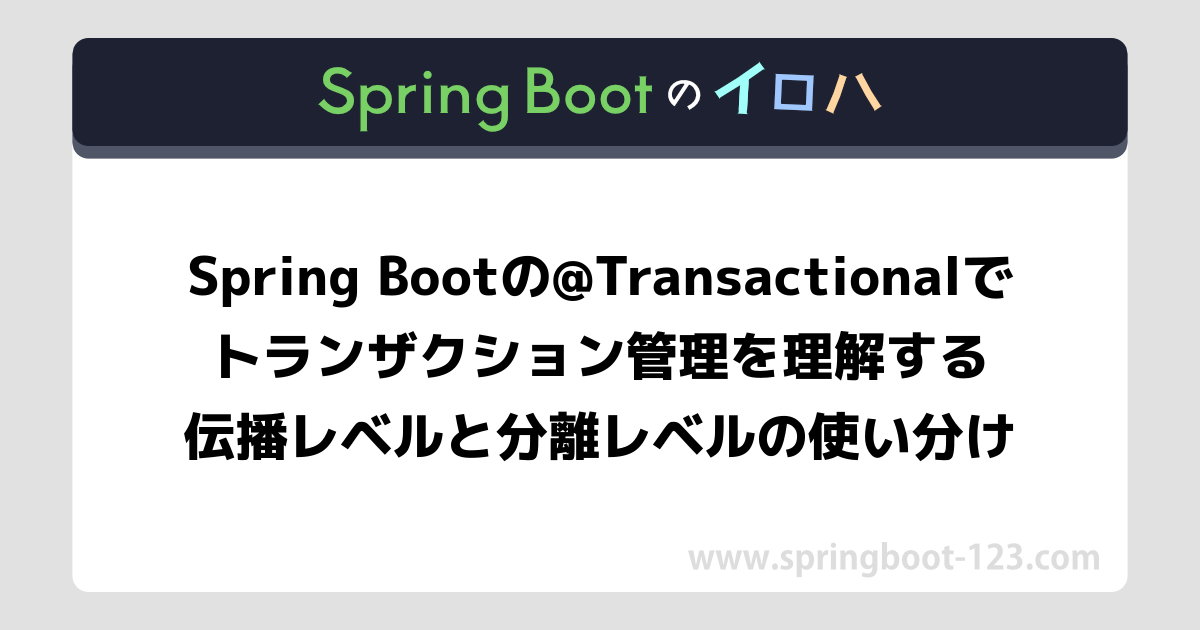 Spring Bootの@Transactionalでトランザクション管理を理解する - 伝播レベルと分離レベルの使い分け